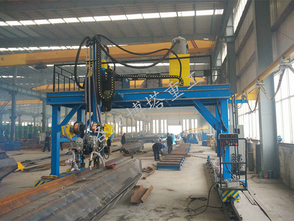 本機由龍門架、焊臂、焊槍機械跟蹤裝置、焊劑回收處理系統(tǒng)、電器控制系統(tǒng)及埋弧焊機等組成。